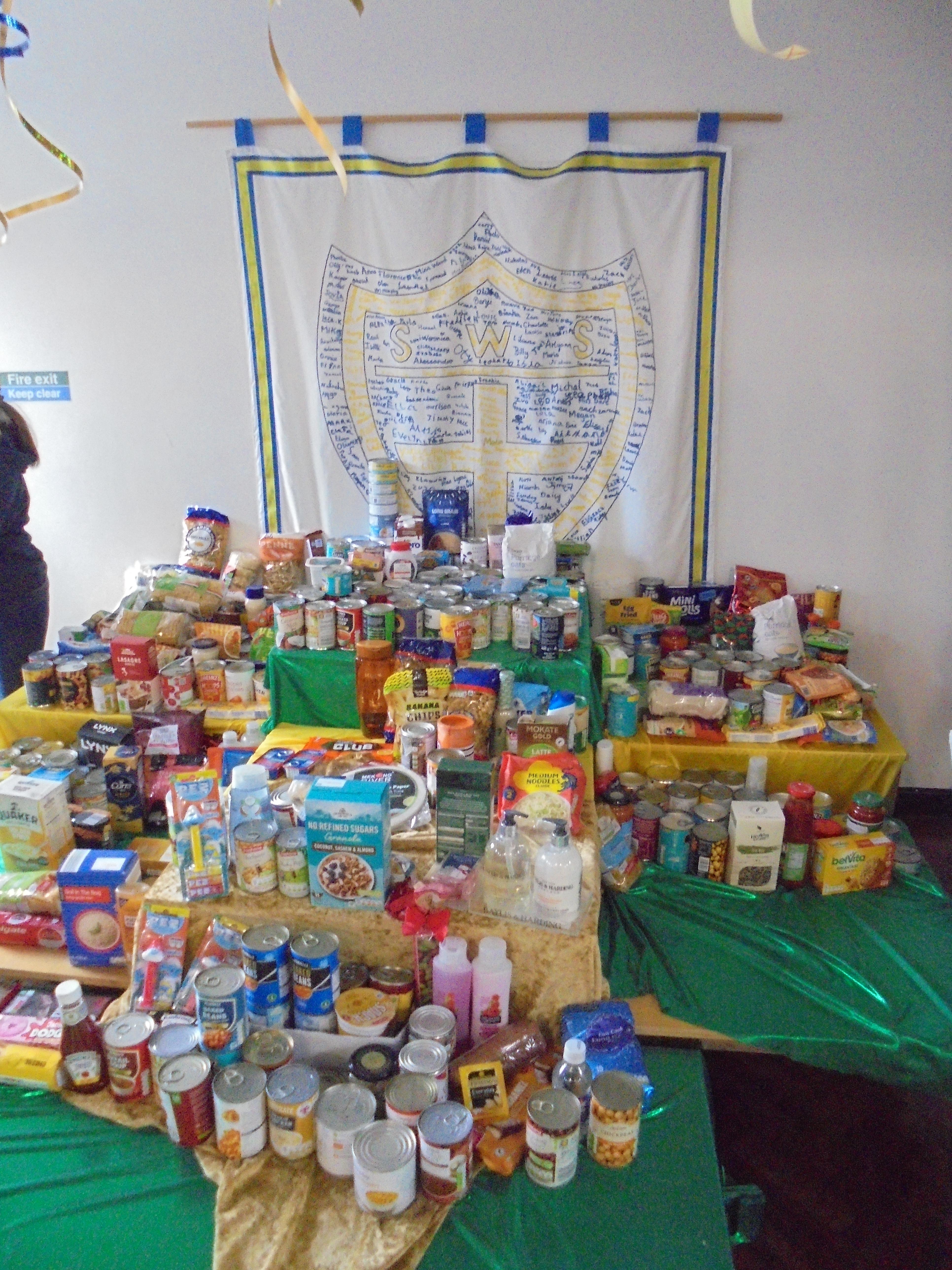 The school council did a great job helping to sort and display the food donated for the foodbank!
