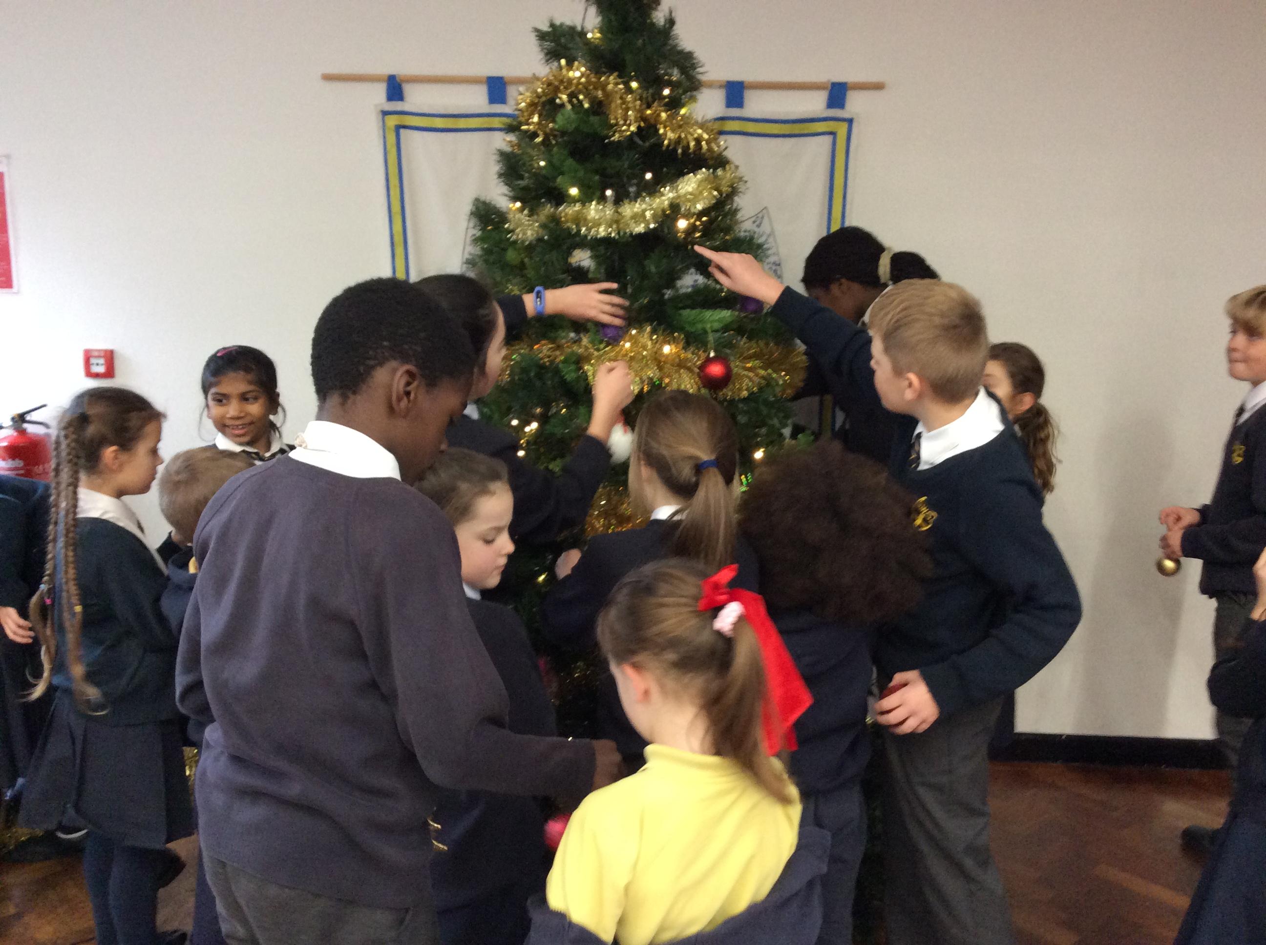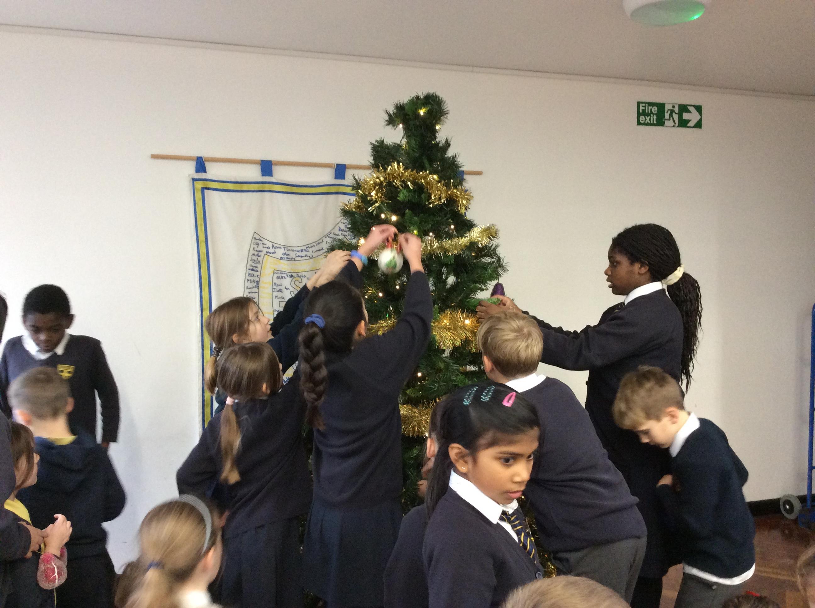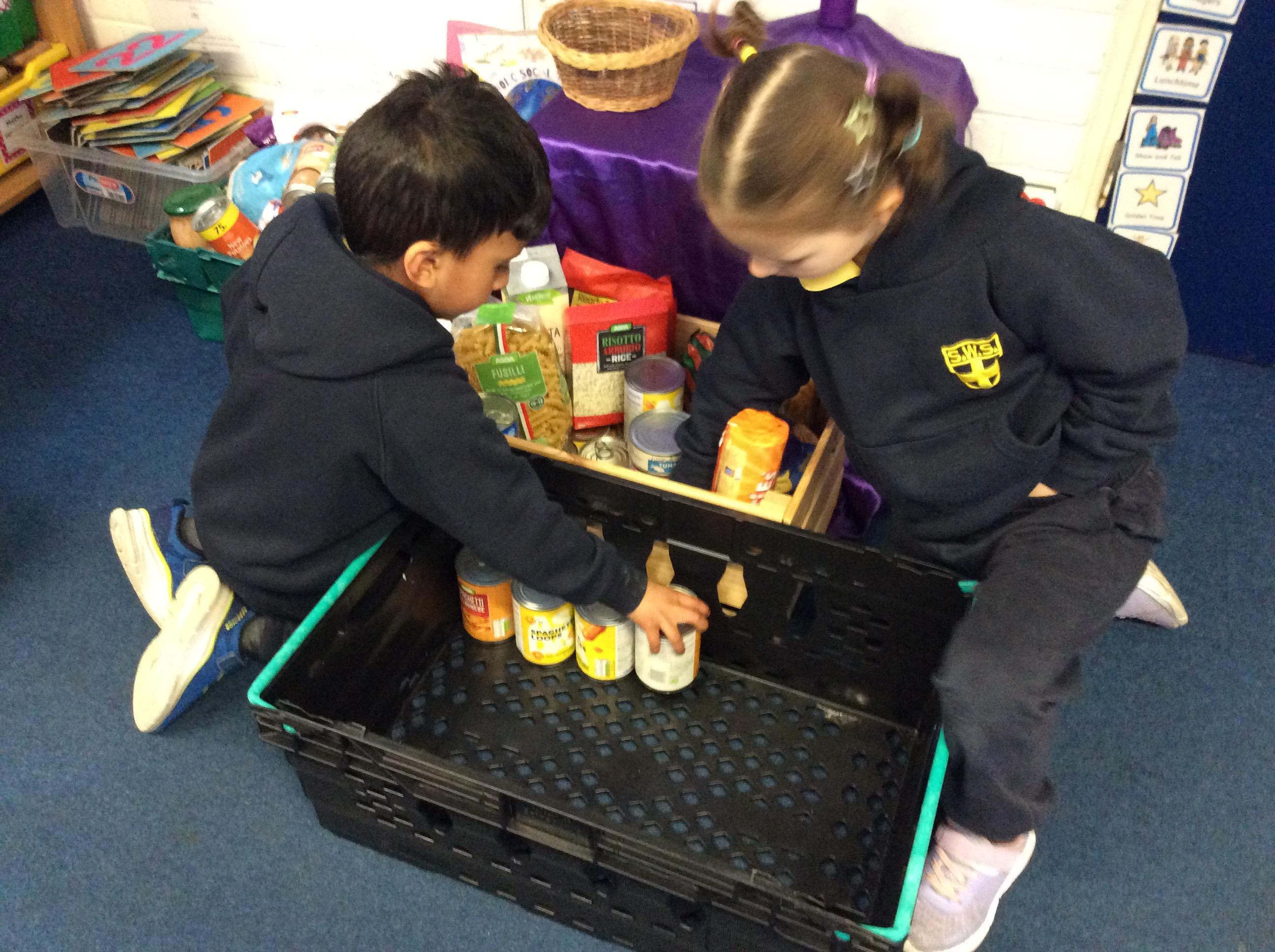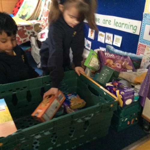 The school council did a great job helping to sort and display the food donated for the foodbank!